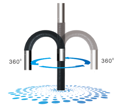 2、靈活控制——機(jī)械360°轉(zhuǎn)向功能,單向最大180°彎曲,超靜音、隱蔽性強(qiáng)(擁有專(zhuān)利技術(shù));