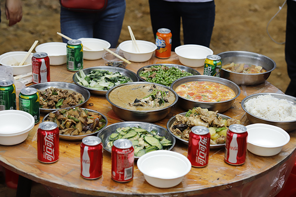 中午時分,年會開始了吃貨環(huán)節(jié),大家自己動手、豐衣足食,各團(tuán)隊將自帶的食材及酒水、飲料等歸集一起準(zhǔn)備各自小組的午餐,各組隊成員有的切菜、有的洗菜,有的拾材,有的炒菜,一盤盤香噴噴、美味可口的家常菜西紅柿炒蛋、虎皮尖椒、年年有魚、肉沫茄子等美味可口的菜肴很快就做好并迅速被一掃而光,其樂融融,吃得好、喝得好,玩得好,好不熱鬧。