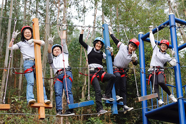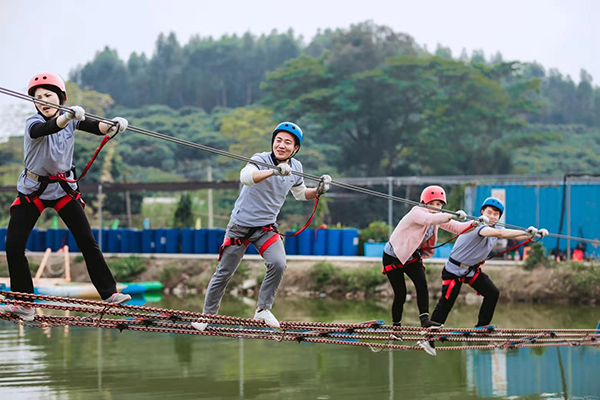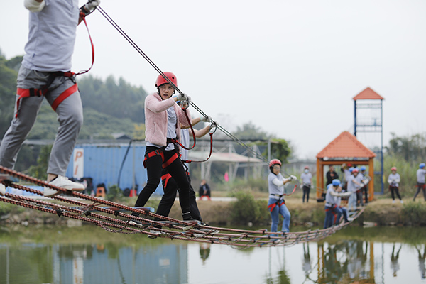 野炊結(jié)束午間休息后,年會進(jìn)入到下半場,下午兩點開始,所有隊員在教練的指導(dǎo)下抖擻精神、重新整裝再出發(fā),開始叢林穿越、高空溜索、飛奪瀘定橋等項目,隨著高空溜索、飛奪瀘定橋等項目的展開,各個小組發(fā)揮各自的優(yōu)勢努力完成每一個項目,每個項目的進(jìn)行和完成極大的鍛煉了團(tuán)隊成員的堅強意志、增強了大家的團(tuán)隊凝聚力和整體向心力,同時每一個人也感受到了團(tuán)隊合作與溝通的重要性。