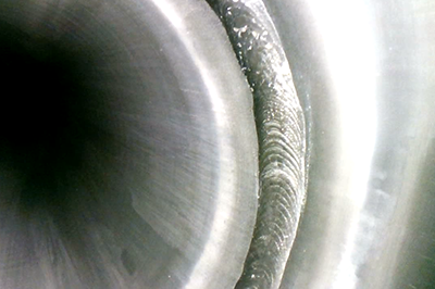 在現場工藝員協助下拆卸了不同部位的潔凈管進行驗證,前面先近距離細看焊縫,再拉遠看,發現焊縫上反光亮度強的位置,都存在焊接不良的情況(焊接電流太小,外部焊好了,內部未焊透)。甲方相關設備管理人員對亞泰內窺鏡產品的清晰度很認可,兩款設備對比,覺得高清系列SIE分離式的工業視頻內窺鏡通過大屏配合手柄調動探頭位置,篩查焊縫不良的效率更高一些,管線客戶需要長一點的,雙方己達成初步合作意向,后續合作細節還有待進一步深入溝通。