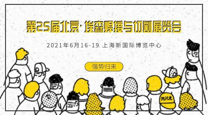 第25屆北京·埃森焊接與切割展覽會將于2021年6月16日至19日在上海新國際博覽中心舉行。