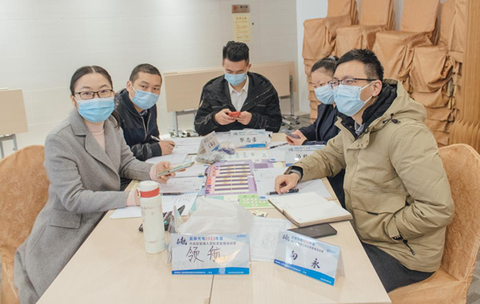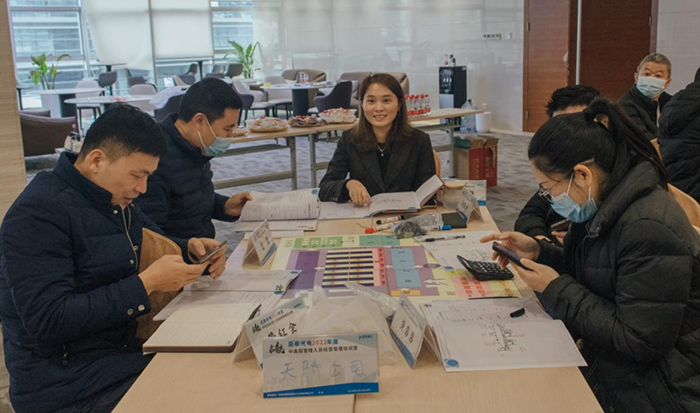參訓學員分成6個小組,模擬企業實際運作背景,每組代表一家虛擬企業,各小組成員按角色分工,分別擔任企業中的總裁、市場營銷總監、生產總監、財務總監、研發總監等職位,一家家企業相繼成立。