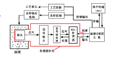 圖-2 潤(rùn)滑油在線(xiàn)檢測(cè)分析儀(系統(tǒng))組成框圖