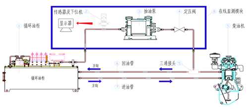 技術(shù)方案:通過為柴油機(jī)潤滑系統(tǒng)增加在線油液監(jiān)測系統(tǒng),實(shí)時(shí)監(jiān)控潤滑系統(tǒng)的多項(xiàng)指標(biāo)參數(shù),結(jié)合潤滑系統(tǒng)的正常范圍標(biāo)準(zhǔn),監(jiān)測潤滑各項(xiàng)數(shù)據(jù)的趨勢波動范圍,判斷系統(tǒng)潤滑質(zhì)量、潤滑設(shè)備的磨損情況,對發(fā)動機(jī)進(jìn)行實(shí)時(shí)診斷預(yù)防漸發(fā)性故障。