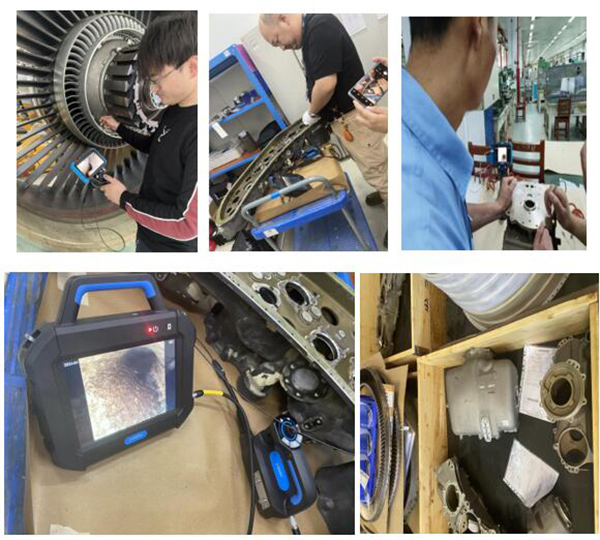 客機維護的工程師為提高巡檢和運維的工作效率,同時檢查出發(fā)動機內(nèi)部結構損傷,提早發(fā)現(xiàn)和排查安全隱患,使用工業(yè)視頻內(nèi)窺鏡在大推力航空發(fā)動機,渦扇發(fā)動機,壓氣機,發(fā)動機葉片,空壓機葉片、燃燒室、油路和潤滑部位進行探傷和狀態(tài)檢查。針對空間狹小和特殊工件的部位,只能用特定鏡頭進行觀察測量。因為渦輪發(fā)動機獨特的內(nèi)部結構為檢測工作帶來巨大的挑戰(zhàn),所以要求內(nèi)窺鏡的結構牢固、性能穩(wěn)定,有非常強的導向能力、明暗可按需調(diào)整的照明、清晰的動/靜態(tài)畫質(zhì)以及良好的操控便攜性。