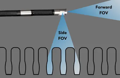 圖像:Yateks P+ 系列雙視圖可以在前視和側(cè)視之間切換,以檢查金屬波紋管復雜的管壁表面。