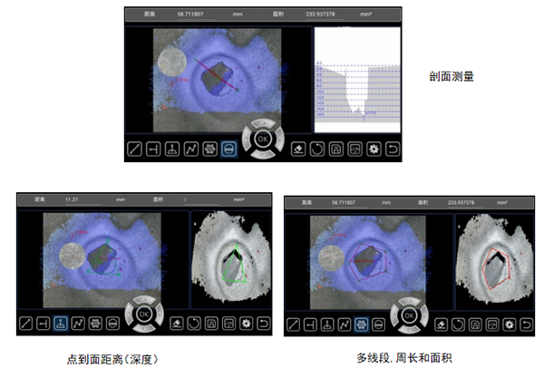 1、精準的三維測量功能——帶測量功能,可生成3D點云圖、深度圖、剖面圖等重現(xiàn)被測物體外貌輪廓,其中三維立體點云圖可縮放、旋轉(zhuǎn)等,實時驗證選點準確性,避免選點錯誤導(dǎo)致的測量結(jié)果失準。